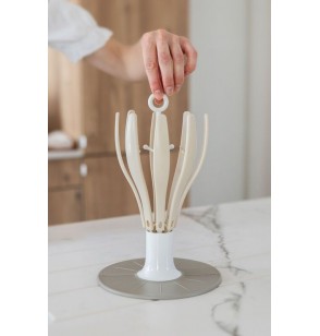 Le design compact de l'égoutte-biberons Flower permet de le plier entièrement (socle également) et de le ranger facilement grâce à un système de pliage très intuitif.