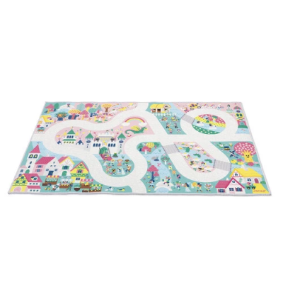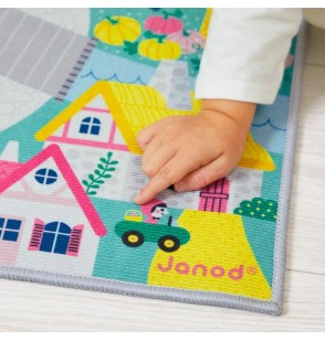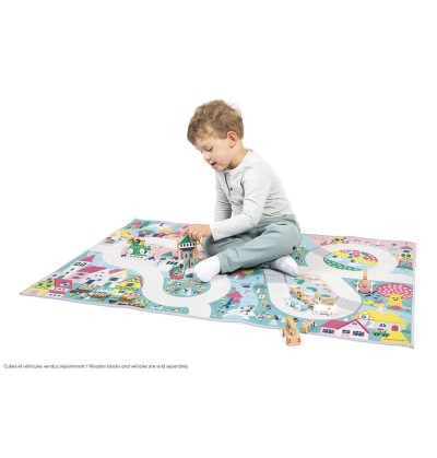 Sur leur tapis de jeu avec circuit, les petits s’amusent à traverser les ponts et les chemins à la recherche d’éléments cachés, tel un cherche et trouve.