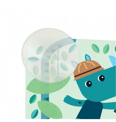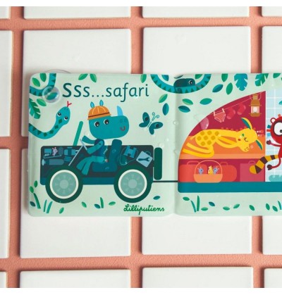 Ce livre enchanté est aussi un jeu de cache-cache : 8 animaux différents se cachent à chaque page dans le feuillage de la jungle.