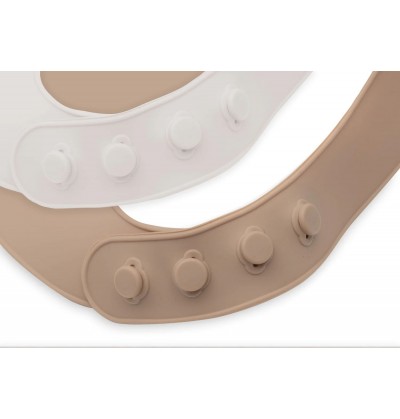 Les deux bavoirs sont en silicone souple, facile à nettoyer.