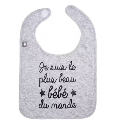 Bavoir "Je suis le plus beau bébé du monde" Gris Chiné BB&CO