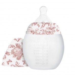 La texture souple et délicate de ce biberon Élhée participe à l'éveil des sens du bébé et accompagne en douceur le lien maternel.