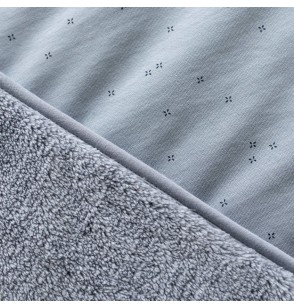 La couverture en micro fibre ouatinée doublée de jersey de coton assure un délicat confort chaud et feutré.