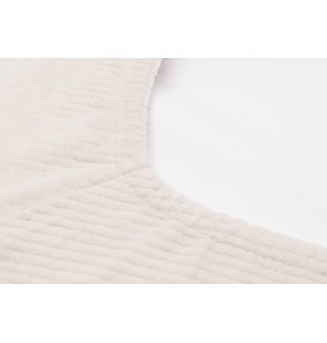 Cette housse pour matelas à langer en coloris Oatmeal est fabriquée en tissu côtelé ultra doux à l’extérieur.