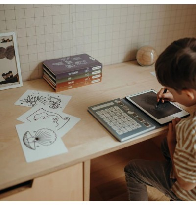 Offrez à votre enfant une expérience de dessin sans limite avec KIDYDRAW-MINI, un livre à dessins avec écran LCD proposant 30 illustrations à décalquer et 5 thèmes uniques.