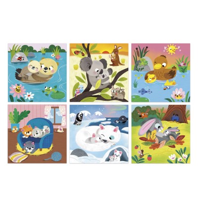 Les illustrations mettent en scène des animaux câlins dans des décors pleins de tendresse : loutres qui se câlinent dans l’eau, une maman koala et son bébé perchés dans les arbres, des petits chats blottis sur un fauteuil, une maman serrant son petit dans ses bras et même des animaux polaires.