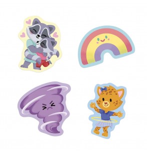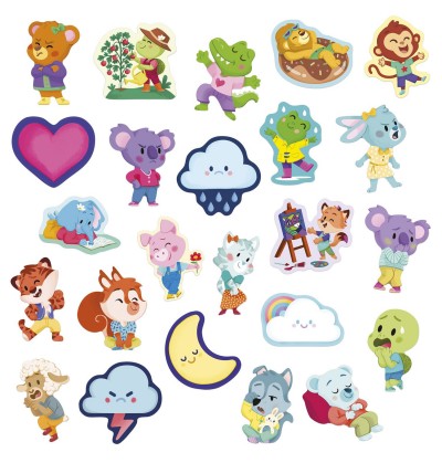 Présentée dans une jolie pochette en forme de petit tigre malicieux, elle dévoile un univers tendre et expressif : des animaux attachants ainsi que des éléments comme un soleil ou un nuage, chacun illustrant une émotion.
