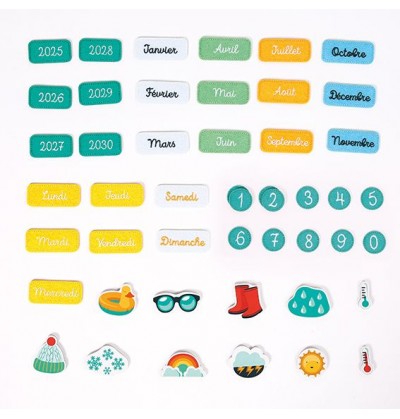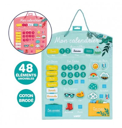 Grâce à ses éléments amovibles en feutrine, les petits curieux pourront s’amuser à découvrir les jours de la semaine, les mois, les saisons, et même la météo du jour !