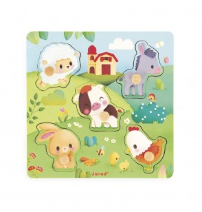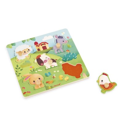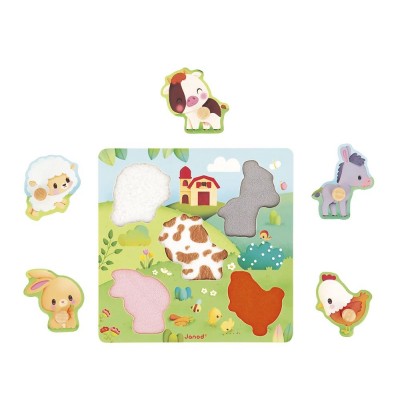 Puzzle tactile en bois - Ferme 5 pièces Janod