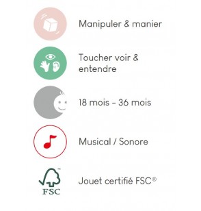 Ce jouet sonore en bois, c’est l'idéal pour aider bébé à développer son ouïe et sa motricité fine, mais aussi sa logique, dès le plus jeune âge !