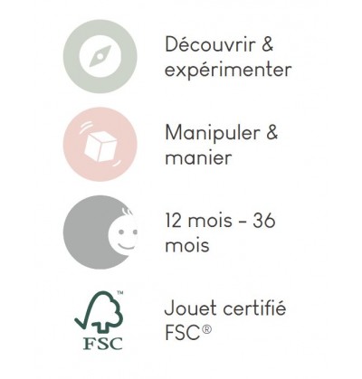 Ce jouet d’éveil est composé de bois certifié FSC™.
