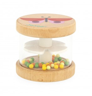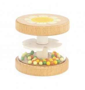 Il suffit de le secouer pour entendre le doux cliquetis des petites billes colorées, un bruit apaisant qui introduit ainsi un premier contact avec les sons, stimulant l’ouïe de bébé.