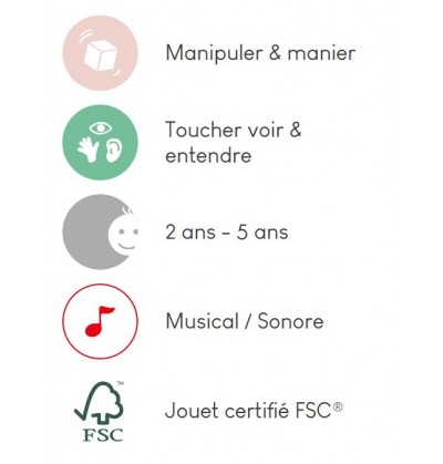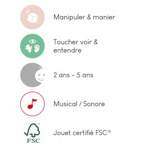 Ce jouet instrument de musique fait partie de notre gamme Gioia, une invitation à l’éveil musical dans la joie, permettant aux tout-petits de découvrir le monde des sons de manière ludique et sous le signe du partage.