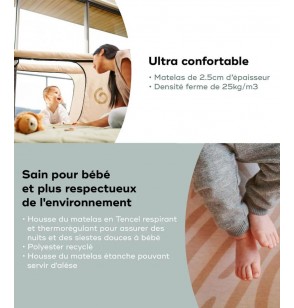 Espace de jeux sûr & sécurisé la journée et lit confortable pour la nuit ou la sieste il répond à tous vos besoins.