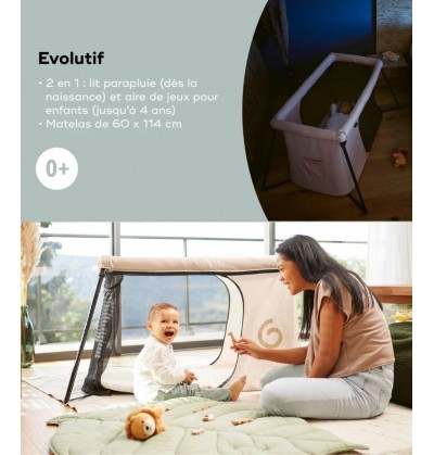 Véritable 2-en-1, le lit parapluie Moov & Sleep est évolutif en aire de jeux !
