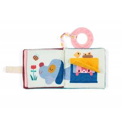 Le petit plus de cet imagier est l'anneau de dentition rouge qui lui est accroché.