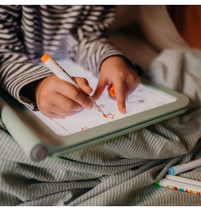 Cette tablette lumineuse biface permet aux enfants de pratiquer le dessin et l'écriture tout en explorant des effets visuels captivants.