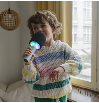 Ce micro tout-en-un offre une expérience musicale amusante avec ses effets sonores et lumineux, le changement de voix et sa connexion bluetooth.