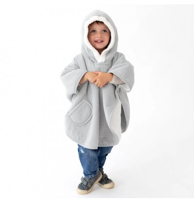 Stylé et pratique, le poncho en tetra jersey doublé de teddy est bien chaud, tout doux et très confortable.