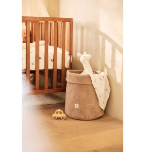 Élégant et spacieux – on y range bien plus qu’on ne le pense ! Le tissu côtelé Cloudy se marie parfaitement avec votre table à langer.