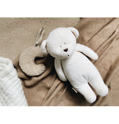 La peluche musicale Ourson de Moonie est un compagnon d’endormissement complet, conçu pour apaiser bébé grâce à une combinaison de sons naturels, musique classique et veilleuse intégrée.