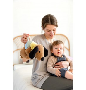 En tirant sur la corde du Teckel, une douce mélodie résonne à un volume agréable pour calmer bébé et l’aider à s’endormir.