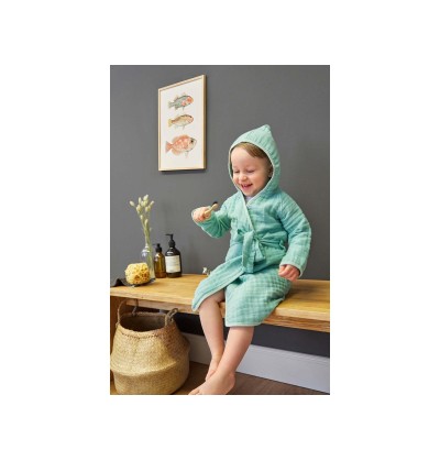 Le peignoir prélavé double couche mousseline en 100 % coton est respirant et ainsi particulièrement doux pour la peau de bébé.