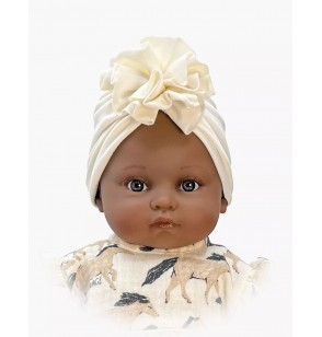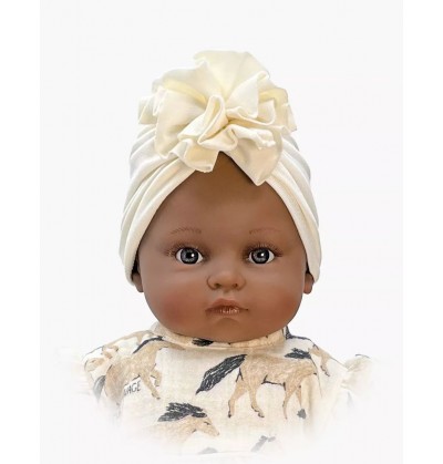 Turban fleur en jersey écru pour poupée Minikane