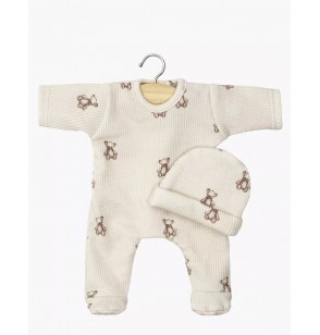 Pyjama Ange avec bonnet en maille côtelée Petit Ourson pour Babies Minikane