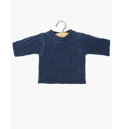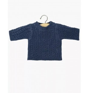 Pull Julian en maille torsadée bleu pour poupée Minikane