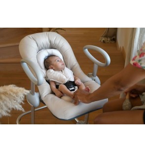 Le coussin concilie sécurité, confort et design dès la naissance du bébé grâce à son réducteur de naissance amovible. Son assise douillette offre un maintien optimal de la tête et une flexion des hanches.