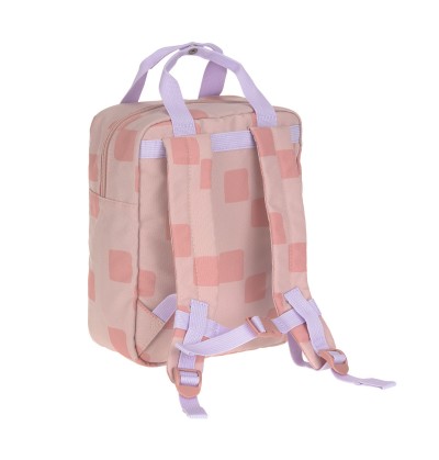 Ce mini sac à dos carré LÄSSIG de la collection Pattern Party en rose séduit par sa forme moderne et ses broderies joyeuses.