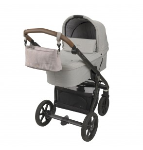 Grâce aux crochets inclus, le sac se fixe rapidement à la poussette et la fermeture éclair maintient tout bien en place.