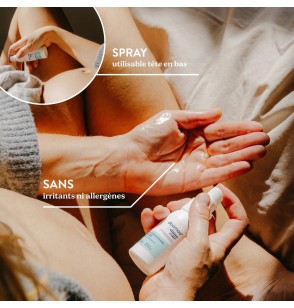 Vaporiser directement sur la zone intime à l'aide du vaporisateur pratique à l'envers, ou réchauffer quelques gouttes dans vos mains.