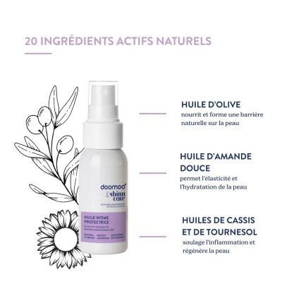 L'Huile Intime Protectrice est composée de 20 actifs naturels, soigneusement sélectionnés pour leurs propriétés réparatrices et protectrices.