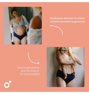 - Évolutive et polyvalente : idéal pendant la grossesse, après l'accouchement et pendant les règles.
