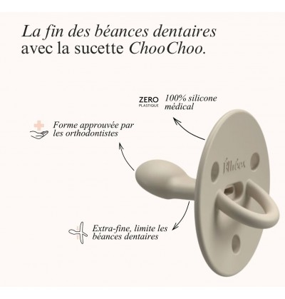 Conçue en collaboration avec des orthodontistes et fabriquée en Rhône-Alpes, la sucette ChooChoo répond aux normes de sécurité et de qualité les plus exigeantes.