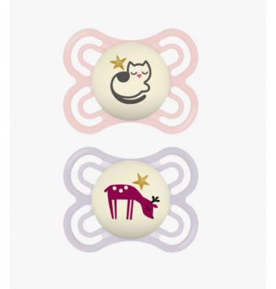 Lot de 2 sucettes Perfect Night 0-6 mois rose/mauve Mam
