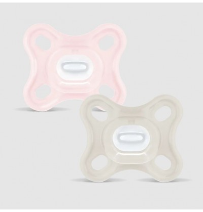Lot de 2 sucettes comfort nouveau-né en silicone rose/blanc Mam
