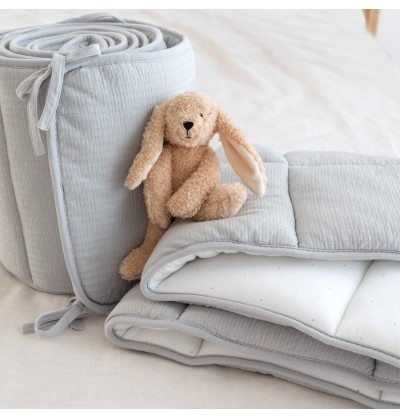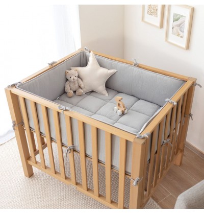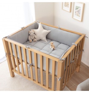 Le tour de parc est le complément indispensable au tapis pour protéger bébé des barreaux.