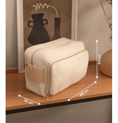 - Tissu bouclette ultra doux, zips dorés et anse en simili cuir