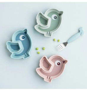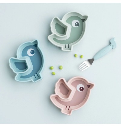 Assiette Stick&Stay en silicone Birdee Powder Done by Deer