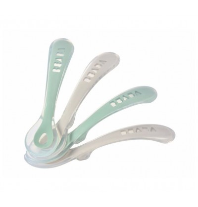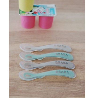 Découvrez la cuillère 2ème âge en silicone iconique de Béaba avec ce set de 4 cuillères.