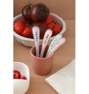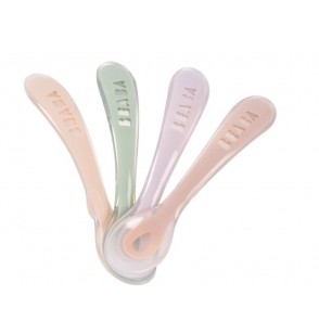 Découvrez la cuillère 2ème âge en silicone iconique de Béaba avec ce set de 4 cuillères.